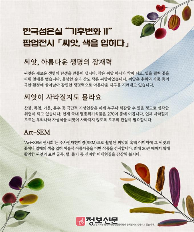 ![]() 국립호남권생물자원관, 자생생물 팝업 전시 “씨앗, 색을 입히다” 진행 |