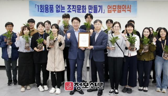 이날 협약에 따라 국립전주박물관은 △각종 회의·행사 진행 시 다회용기 사용 △청사 출입시 1회용품 반입 제한 △사무용품 구매시 재활용제품 이용 등을 실천하기로 약속했다.