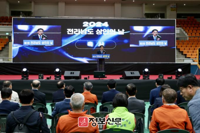 이날 열린 상인의 날 행사는 대한민국 경제의 근간인 전통시장 상인들의 자긍심을 고취시키고 애환과 노고 등을 위로하기 위해 마련된 것으로 김영록 지사와 전남도의회 전경선․조옥현․박경미 의원, 시․군상인 등 1,200여 명이 참석했다.