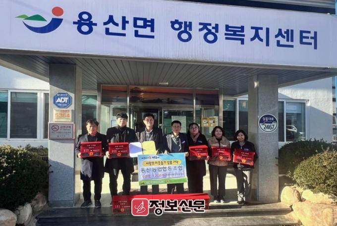 용산농업협동조합에서는 용산면의 어려운 주민을 돕고자 매년 기탁을 실천해 오고 있다. 올해에는 기탁금과 보행보조기 우편함 등 3회에 걸쳐 2천9백만원 상당을 기탁하여 이웃 사랑을 실천하고 있다.