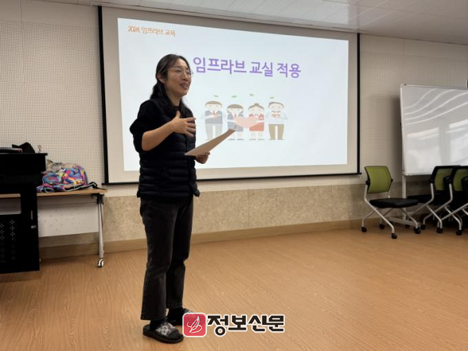 연수에 참가한 한 교사는 1차 연수에서 배운 임프라브를 학교에서 활용한 경험을 공유하며 “전교생과 함께 활동한 결과 학생들의 자기표현 능력이 눈에 띄게 향상됐고, 서로의 의견을 경청하고 존중하는 분위기가 조성됐다. 또한 학생들이 유연하게 사고하며 배려심이 깊어져 함께 웃는 시간이 늘어났다”고 밝혔다.
