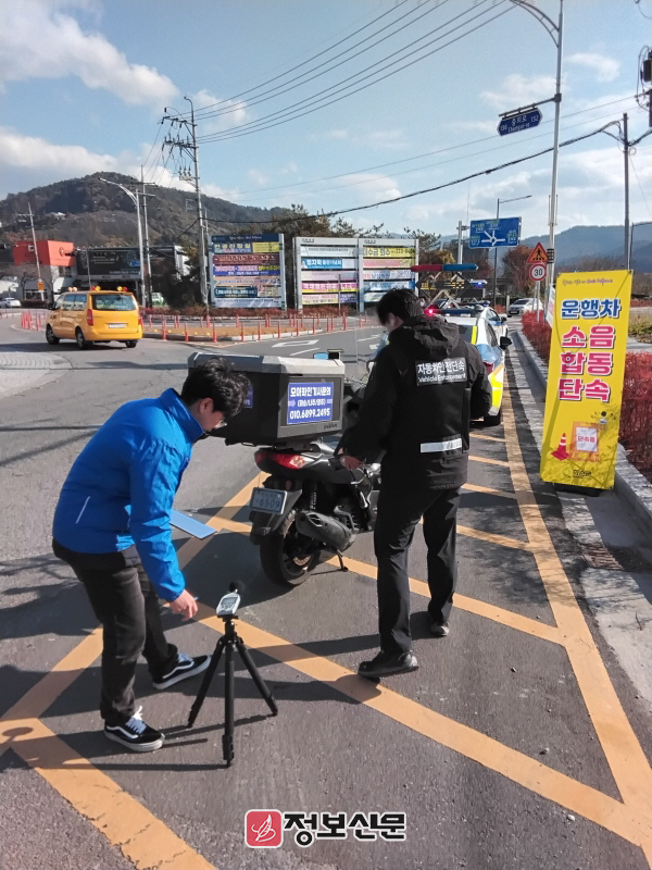 고인돌공원 교차로를 통행하는 이륜자동차를 대상으로 ▲배기 소음 허용 기준 초과 여부 ▲소음기 탈거 등 불법 구조변경 여부 ▲자동차관리법상 안전기준 준수 여부 등을 점검한 결과 기준을 위반한 운행차는 없었다.