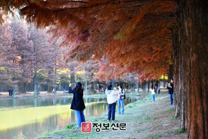 고요한 물 위에 반사된 숲의 색감까지 더해져 담양 특유의 늦가을 정취를 느끼려는 이들의 발걸음이 이어지고 있다.