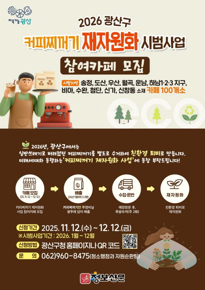 ![]() 광주시 광산구, 커피 찌꺼기 재자원화 시범사업 추진 |