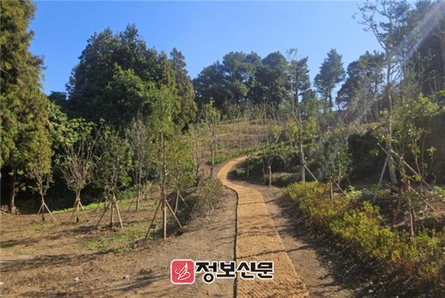 이번 사업은 올해 3월에 착공, 감귤원 폐원지를 정비하여 감탕나무 등 교목 1천2백여 본과 금목서 등 관목 3천5백여 본을 식재하고 산책로 1.2km를 개설하여 시민들이 여가를 즐길 수 있는 공원을 조성하였다.