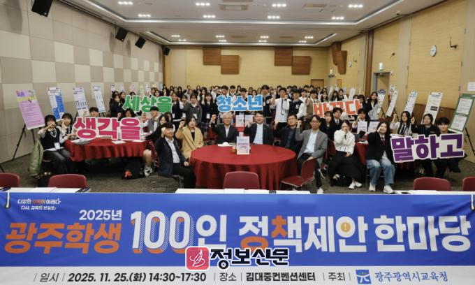 광주시교육청(교육감 이정선)은 25일 김대중컨벤션센터 중소회의실에서 23개 팀 100여 명의 고등학생이 참여한 가운데 ‘2025 광주 학생 100인 정책제안 한마당’을 개최했다.