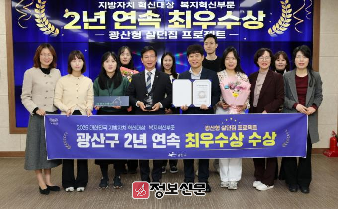광산구는 ‘대한민국 지방자치 혁신대상’ 2년 연속 최우수상을 달성했다. 동시에 ‘살던집 프로젝트’는 ‘2025 대한민국 주거복지문화대상’ 종합대상에 이어 올해 복지 분야 대외 평가 두 번째 수상을 기록했다.