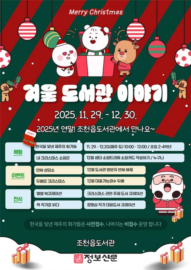 ![]() 제주시 조천읍도서관, 겨울 도서관 이야기 송년 프로그램 운영 |