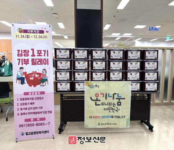![]() 보성군 벌교읍, 이웃사랑 ‘김장 1포기 기부 릴레이’ 진행 |