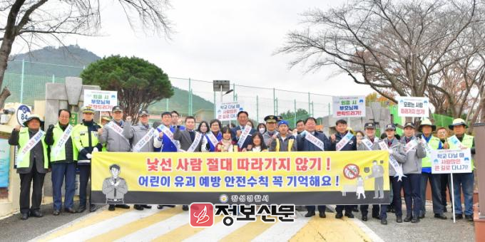 장성군, 장성경찰서, 장성교육지원청, 장성중앙초등학교 및 학생회 관계자와 녹색어머니회 회원 등 60여 명이 참여해 등굣길 아이들에게 △낯선 사람 접근 시 대처 요령 △즉시 신고 방법 △큰 소리로 외치기 등 유괴 예방 수칙을 안내했다. 관련 책자와 어린이용 경보기도 배부했다.