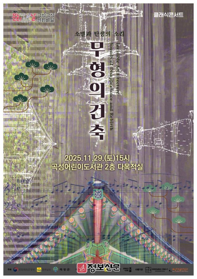 이번 11월 마지막 공연은 오는 29일 토요일, 곡성어린이도서관 2층 다목적실에서 열린다. 이번 공연이 더욱 의미 있는 것은 지난 2021년 전라남도 무형유산 ‘대목장’으로 지정된 김영성 보유자가 올해 국가무형유산 ‘대목장’ 보유자로 승격 지정이 됐다는 점이다. 이러한 기쁜 소식과 더불어 건축유산과 무형유산을 주제로 한 클래식 공연이 바로 <소멸과 탄생의 소리, 무형의 건축>이다.