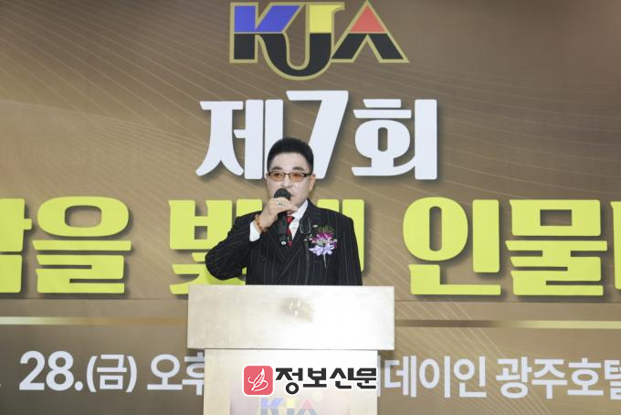 ![]() ▲(사)대한기자협회 광주·전남협회가 주최한 2025년 ‘제7회 호남을 빛낸 인물대상’ 시상식에서 정훈 협회장이 대회사를 하고 있다. |