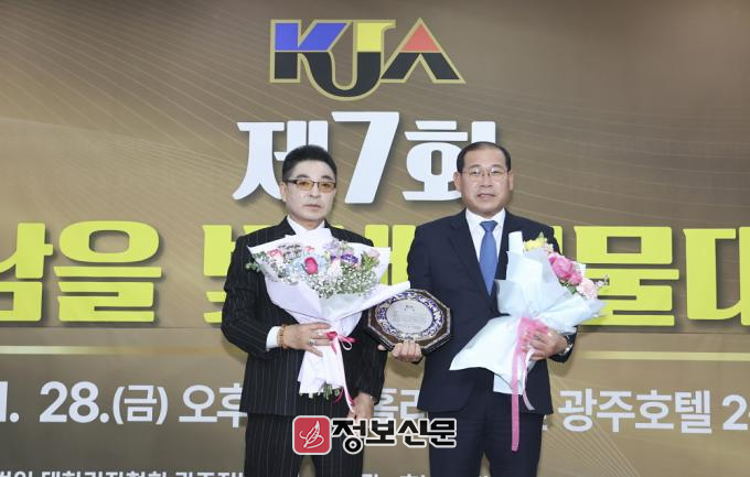 ![]() ▲ 11월 28일 광주 서구 홀리데이 인 광주호텔 2층 연회장에서 열린 ‘2025년 제7회 호남을 빛낸 인물대상’ 시상식에서, 정치부문 기초의원 ‘의정’대상을 수상한 김재승 장흥군의회 의장 |