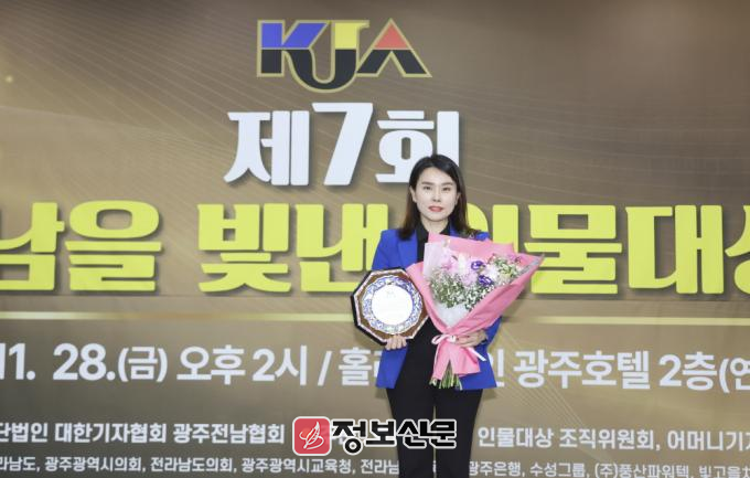 ![]() ▲ 11월 28일 광주 서구 홀리데이 인 광주호텔 2층 연회장에서 열린 ‘2025년 제7회 호남을 빛낸 인물대상’ 시상식에서, 정치부문 광역의원 ‘민생경제의정’대상을 수상한 한숙경 전라남도의회 의원 |