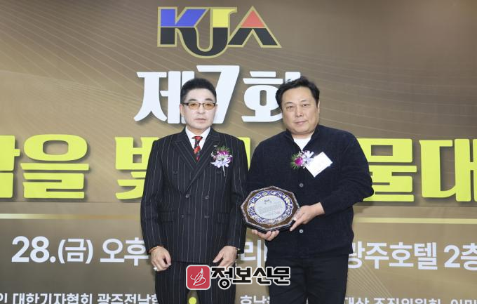 ![]() ▲ 11월 28일 광주 홀리데이 인 광주호텔 2층 연회장에서 열린 ‘2025년 제7회 호남을 빛낸 인물대상’ 시상식에서, (사진 오른쪽) 조인철 국회의원을 대신해 조성배 비서관이 정치부문 국회의원 ‘민생경제의정’대상을 수상한 뒤 기념촬영을 하고 있다. |