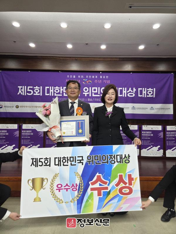지방자치연구소(주)가 주최하는 ‘대한민국 위민의정대상’은 풀뿌리 민주주의 실현과 지역 발전에 탁월한 성과를 낸 지방의원을 발굴해 수여하는 상이다. 이번 수상자는 전국의 광역·기초의원을 대상으로 공모를 진행, 1·2차 서류심사와 3차 대면심사 등 엄격한 검증 과정을 거쳐 최종 선정됐다.