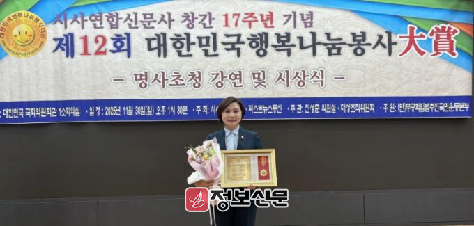 ![]() 광주 북구의회 이숙희 의원, 제12회 대한민국 행복나눔봉사 대상 수상 |