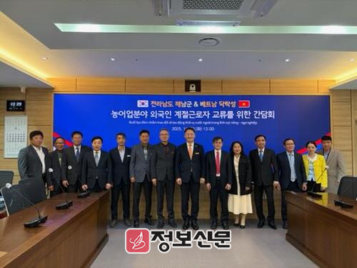 25일, 해남군청을 방문하여, 농어업 분야 계절근로자 교류를 목적으로 2025년 11월에 체결한 양 지자체 간 협약의 이행에 대한 간담회를 가졌다. 해남군은 2025년에 2800여 명의 계절근로자가 입국하여 지역의 일손 부족 문제 해소에 기여하고 있다.