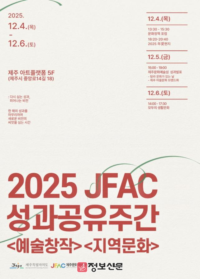 ![]() 제주문화예술재단, 「JFAC 성과공유주간」 개최 |