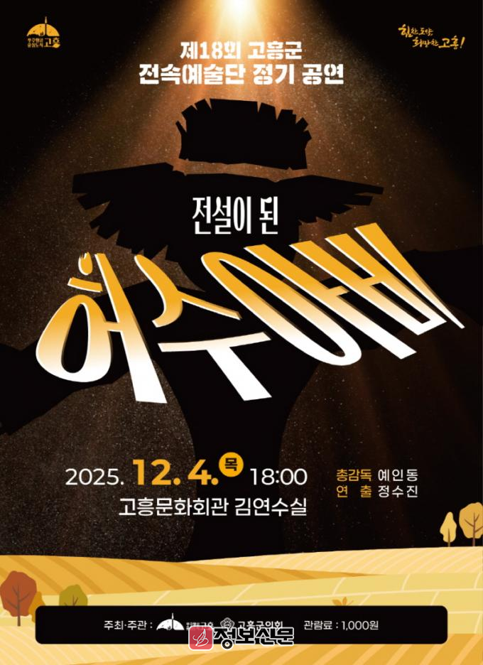 ![]() 고흥군 전속예술단, 18회 정기공연 ‘전설이 된 허수아비’ 로 군민과 만난다 |