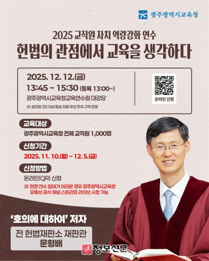 ![]() 광주광역시교육청, 문형배 전 재판관 초청 연수 개최 |