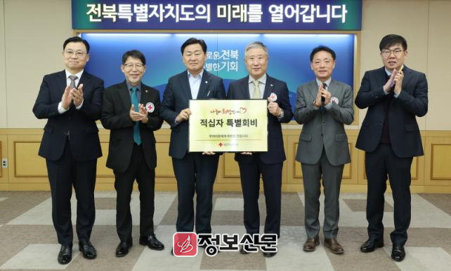 전달식에는 대한적십자사 전북지사 김홍식 회장과 임직원이 참석해 지역사회 나눔 실천의 의미를 함께했다. 전북도는 매년 적십자 특별회비를 기탁하며 도민 참여 확산과 기부문화 정착에 앞장서고 있다.
