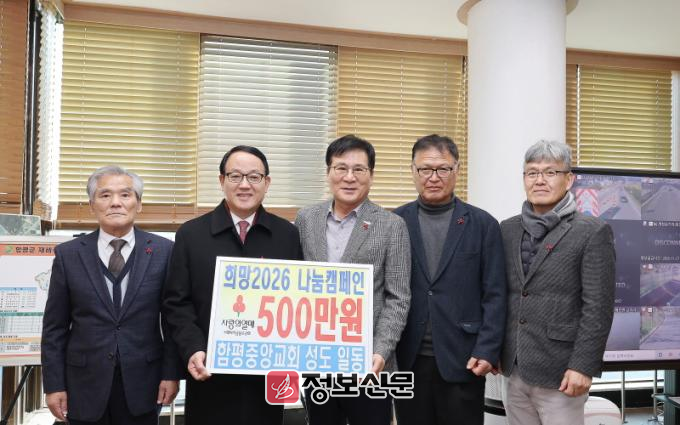 함평군은 7일 “함평중앙교회(목사 최창영)가 지난 5일 ‘희망2026 나눔캠페인’에 참여해 이웃돕기 성금 500만 원을 기탁했다”고 밝혔다.