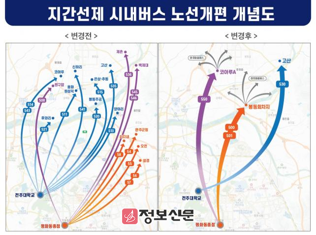 ![]() 봉동·용진 방면 전주시내버스 지간선제 노선개편 새해 첫날 시행 |