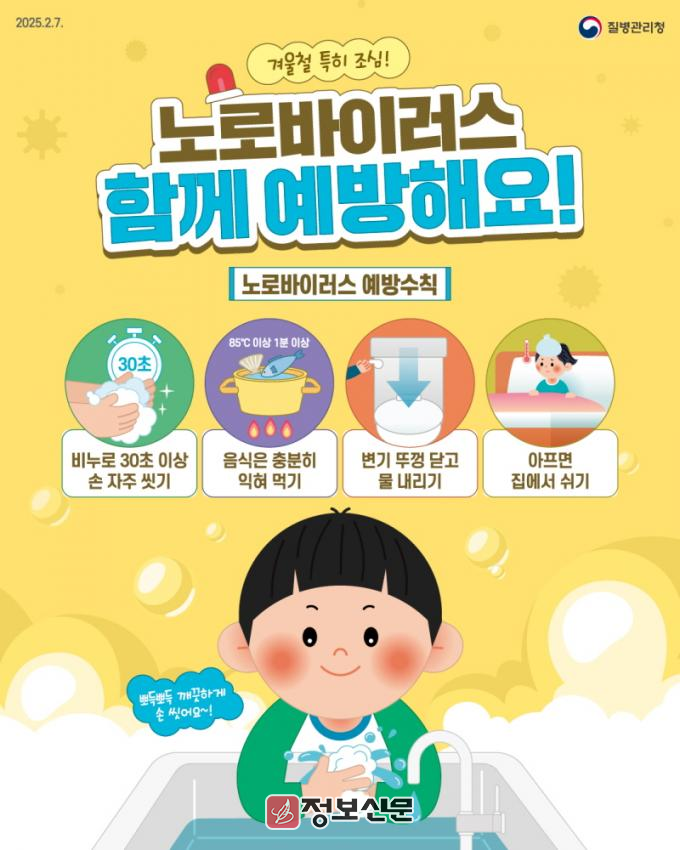 최근 4주간 질병관리청에서 운영하는 병원급 장관감염증 표본감시결과, 노로바이러스 감염증 발생 증가 추세이며 작년 같은 기간 대비 58.8% 증가한 양상이다. 특히, 전체 환자 중 0~6세 영유아 비중이 29.9%를 보였다고 밝혔다.