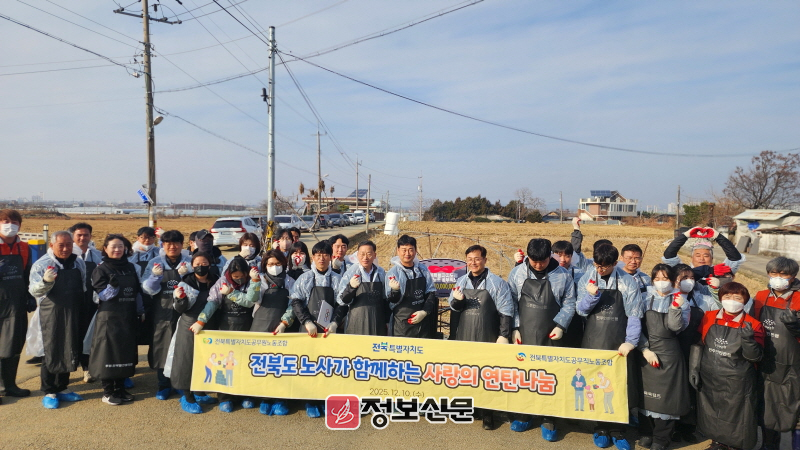이번 봉사활동에는 송상재 공무원 노조위원장, 오광철 공무직 노조위원장, 노홍석 전북특별자치도 행정부지사를 비롯한 도청 직원 30여 명이 참여해 전주시 전미동 일대 취약 가구를 직접 방문, 연탄을 전달하고 안부를 살피며 이웃사랑을 실천했다. 참석자들은 가파른 골목길과 협소한 주거환경 속에서도 연탄을 한 장 한 장 정성껏 전달하며 겨울을 앞둔 이웃들의 따뜻한 난방을 도왔다.