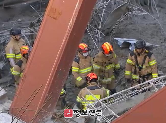 현재까지 2명은 지하층에 매몰된 것으로 추정되며, 구조 당국은 열화상카메라와 특수 장비를 동원해 집중 수색을 벌이고 있다. 그러나 콘크리트와 철근이 뒤엉켜 있는 잔해가 넓게 쌓여 있어 수색에 난항을 겪는 상황이다. 대형 크레인이 투입됐으며, 구조대원들은 철근을 절단하며 진입 공간을 확보하고 있다.