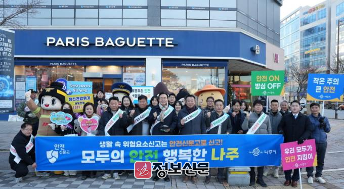 나주시는 12일 오전 8시 빛가람동 한전KDN 사거리 일원에서 안전문화운동 확산 캠페인을 진행했다고 밝혔다. 이번 캠페인은 시민 스스로 위험 요소에 대한 경각심을 높이고 일상에서 안전을 점검하는 문화를 정착시키기 위해 마련됐다.