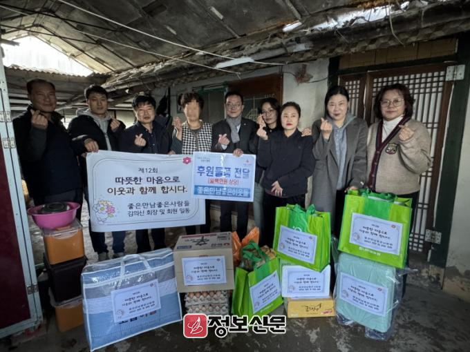 좋은만남좋은사람들은 함평군 내 다양한 직업군으로 구성된 친목회로, 회원들이 십시일반 모은 회비를 바탕으로 2014년부터 연말 김장김치 나눔을 이어오며 꾸준한 봉사·기부 활동을 펼쳐왔다. 특히 2018년부터는 함평군 9개 읍면을 순회하며 지역의 어려운 이웃들에게 직접 나눔을 실천해 오고 있어 지역사회에 큰 귀감이 되고 있다.