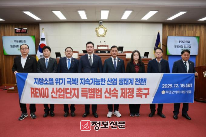 ![]() 무안군의회, ‘RE100 산업단지 특별법’ 제정 촉구 건의안 채택 |