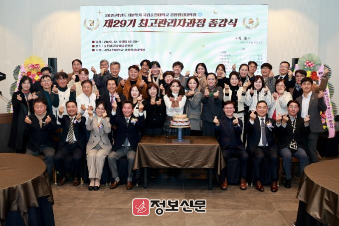 국립순천대학교 경영행정대학원 최고관리자과정은 1995년 개설 이후 30년간 지역사회와 함께 성장해 온 전문 교육과정으로, 지금까지 1,800여 명의 동문을 배출해 왔다. 수료생들은 전남 동부권 지역을 중심으로 공공·산업·경제·문화 분야에서 오피니언 리더로 활동하며 지역사회 발전과 지역중심대학 육성에 기여하고 있다. 올해 3월 입학한 제29기 원우 39명은 내년 2월 21일 정식 수료를 앞두고 있다.