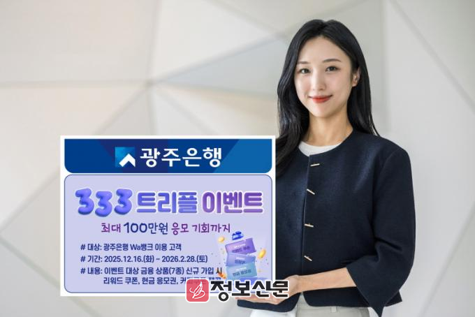 ![]() 광주은행, ‘333 트리플 이벤트’ 실시 가입할수록 혜택 UP! |