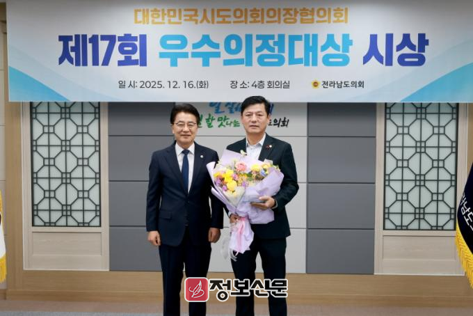 ![]() 전남도의회 이현창 의원, 제17회 대한민국시도의장협의회 우수의정대상 수상 |