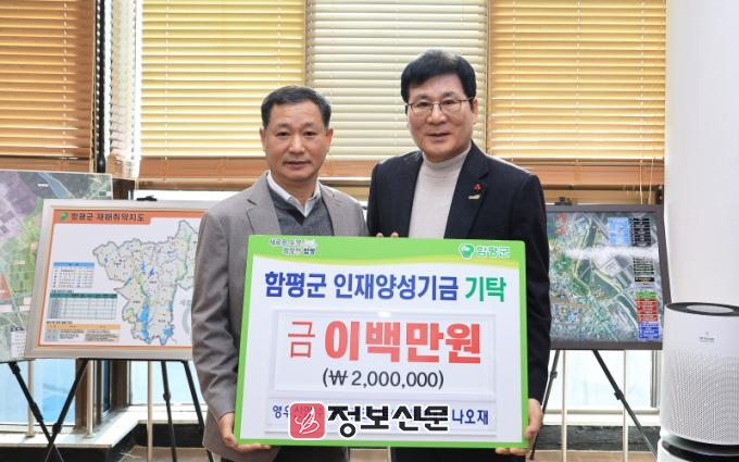 함평군은 16일 “영우산업㈜·광진콘크리트㈜에서 지난 15일 인재양성기금에 200만 원을 기탁했다”고 밝혔다.
