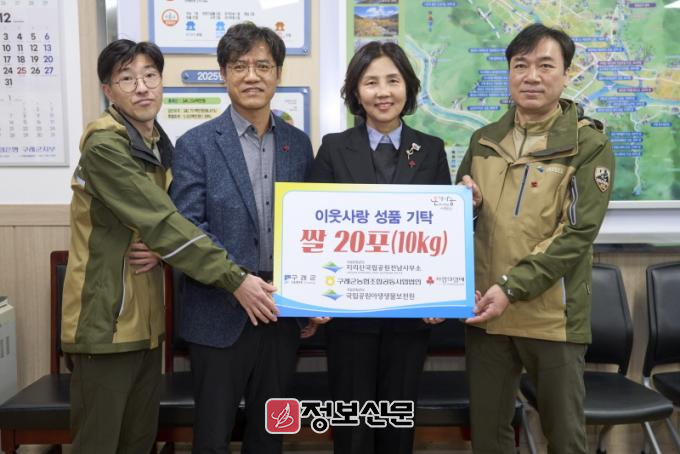 오수미 구례군 부군수는 “지리산국립공원전남사무소에 지역과 함께하는 상생의 가치를 실천해주셔서 깊이 감사드린다”며 “기탁해주신 쌀은 도움이 필요한 가정에 소중히 전달하겠다. 앞으로도 다양한 협력 활동을 통해 지역사회 복지 향상에 힘쓰겠다”고 전했다.