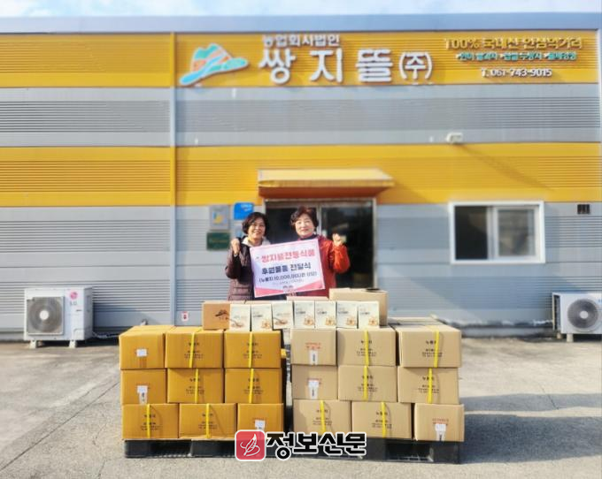 이번 기부는 경제적 어려움을 겪는 이웃들에게 따뜻한 마음을 전하고 지역사회와 상생하기 위한 취지로 마련됐다. 쌍지뜰은 남녀노소 누구나 간편하게 먹을 수 있는 누룽지 등 전통식품을 준비해 일상에 실질적인 도움이 될 수 있도록 했다.