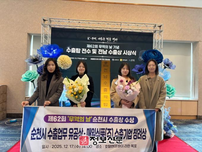 시 관계자는 “2024년에 이어 2025년 수출분야 3개 부문 수상은 ‘Made in 순천’의 수출 경쟁력을 확인하는 계기”라며 “앞으로도 수출기업과 함께 수출 확대를 위한 지원 방안을 지속적으로 모색하겠다”고 말했다.