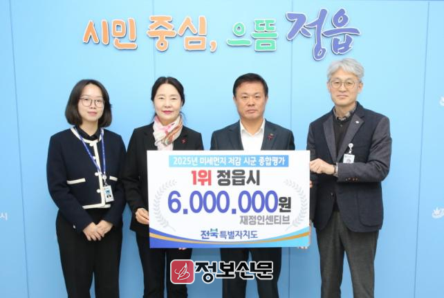 정읍시는 전북특별자치도가 주관한 ‘2025년 미세먼지 저감 시·군 종합평가’에서 최우수 기관으로 선정되는 영예를 안았다고 19일 밝혔다.