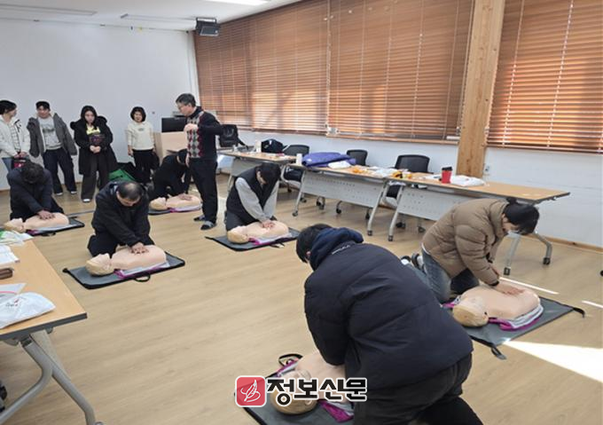 세부 교육내용은 ▲응급처치의 원칙과 필요성에 대한 이론교육과 ▲심폐소생술(CPR) ▲기도 폐쇄 시 응급 대응 ▲자동심장충격기(AED) 사용법 ▲상처 및 골절 처치 방법 등 실제 상황에 적용 가능한 실습내용을 포함하여 진행됐다.