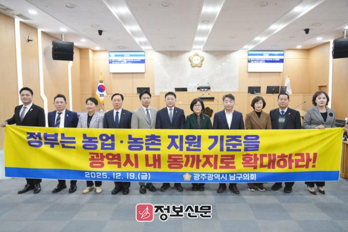 ![]() 광주 남구의회, 광역시 내 동지역 농민들의 역차별 해소 및 농업정책 기준 개선 촉구 건의안 채택 |