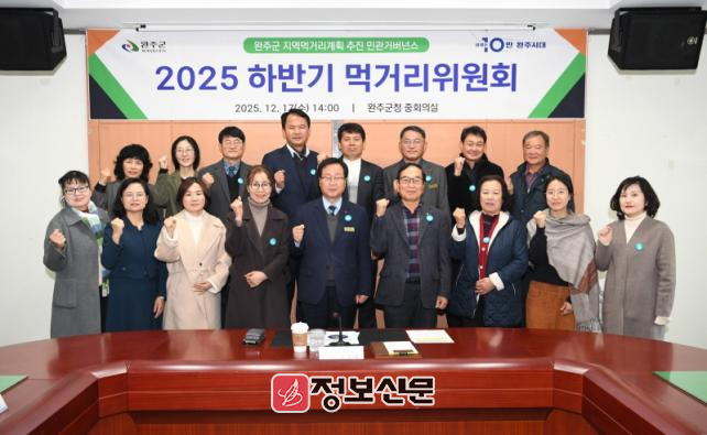 22일 완주군은 최근 군청 4층 중회의실에서 먹거리위원 20여 명이 참석한 가운데 ‘2025년 하반기 먹거리위원회 정기회의’를 열었다고 밝혔다.