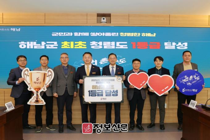 ![]() 해남군, 2025년 공공기관 종합 청렴도평가 최고등급 1등급 달성 |