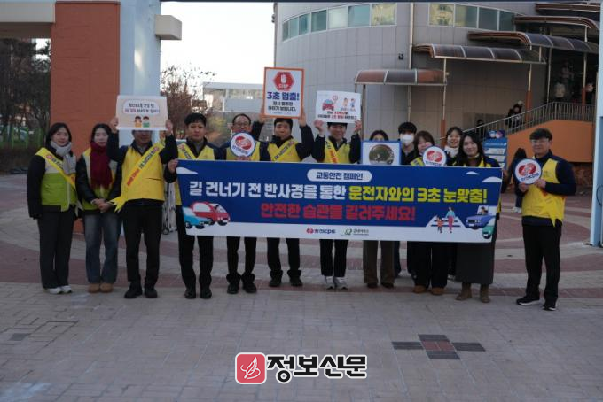 교통안전캠페인은 나주 빛가람초등학교에서 진행됐으며 어린이 보호구역 내 교통사고를 선제적으로 예방하고, 지역사회 전반에 운전자와 보행자가 상생하는 안전 문화를 정착시키기 위해 마련됐다.