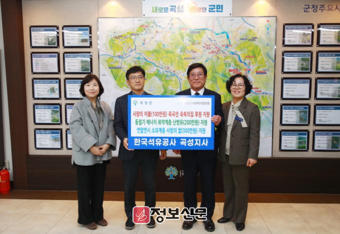 송영섭 한국석유공사 곡성지사장은 “우리 지사는 농촌일손 돕기, 홀몸어르신 말벗·도시락 후원, 취약계층 난방비 지원, 장학금 지원, 취약계층을 위한 김장 행사, 환경정화활동 등 지역사회를 위한 다양한 공헌활동을 추진하고 있으며 앞으로도 지속적으로 지역사회에 나눔과 사랑을 실천하겠다”라고 말했다.