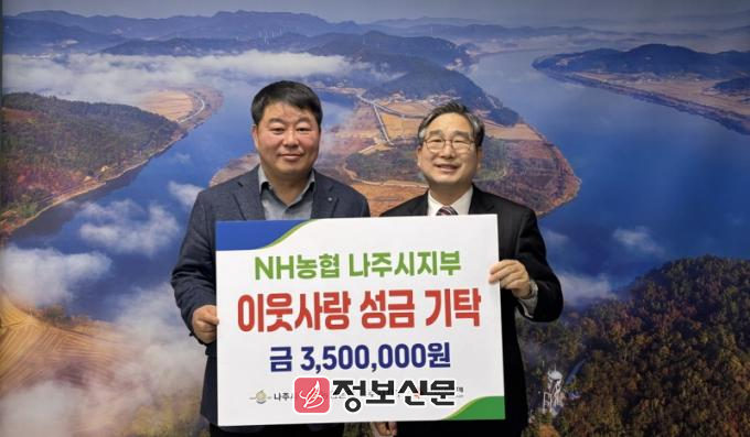 농협 나주시지부는 23일 연말연시를 맞아 사회복지시설 지원을 위해 성금 350만 원을 나주시에 기탁했다.