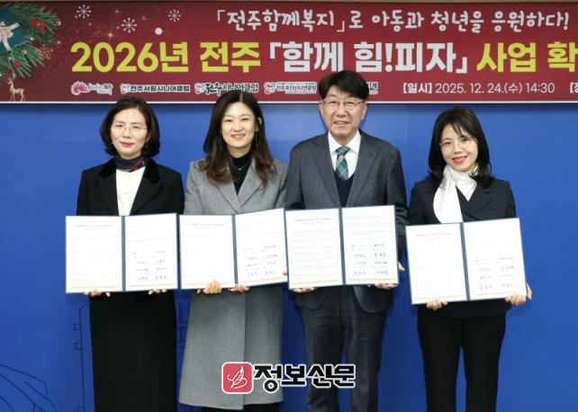 전주시와 전주시시니어클럽연합회는 24일 전주시장실에서 우범기 전주시장과 서원·전주·효자시니어클럽 등 3개 수행기관 관장이 참석한 가운데, ‘전주함께복지’ 시리즈의 일환인 ‘전주 함께힘!피자’ 확대 협약을 체결했다.